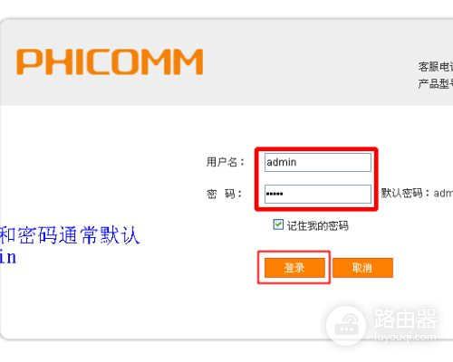 5、接着进到路由器登录界面——》输入路由器用户名——》输入路由器密码——》登录用户名和密码斐讯的通常都是admin。
