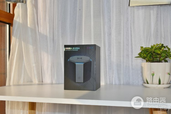 盒子背面简单介绍了路由器的主要特征:“酷炫游戏外观、为游戏而生、旗舰级硬件配置和智能家居连接中心”等,整体包装设计给人一种干净利落视觉感受。