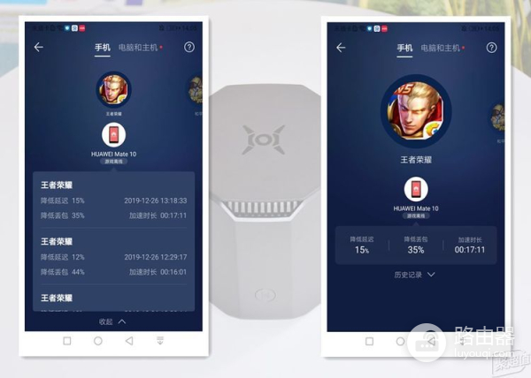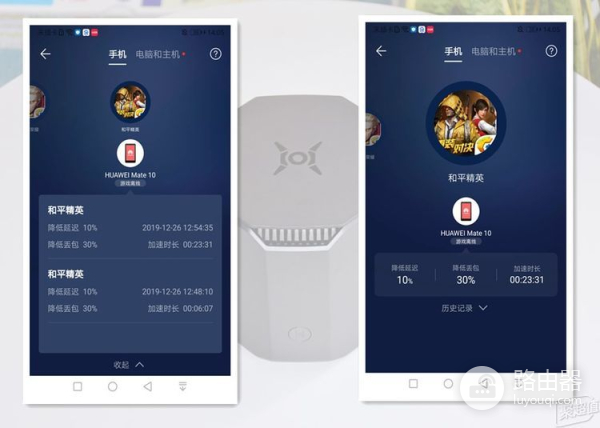 接下来便是重中之重的游戏体验,荣耀猎人游戏路由秉承为游戏而生理念,加入了Game Turbo专利技术,针对 Wi-Fi的两个频段存在的干扰丢包问题进行优化改进,不仅大幅度增强了时延稳定性,还能利用路由和手机的凌霄Wi-Fi芯片协同作用,支持游戏数据在2.4GHz和5GHz频段同时传输,打破数据只能在一条Wi-Fi上传输的技术壁垒,使得手机在接收游戏数据包时可以择优选择更稳定、快速的WIFI频段,实现双发选收以及中近距离0卡顿效果,但目前该技术仅限于荣耀V30、华为Mate30手机。