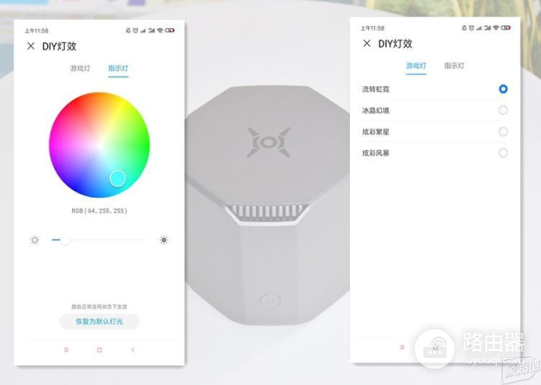 荣耀游戏路由还有丰富应用插件,好比DIY灯效,可以对荣耀猎人路由的灯光效果进行自定义设置,在玩游戏时,路由器就会呈现出炫酷灯效,进一步烘托游戏氛围。