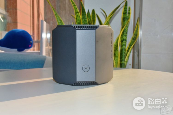 荣耀猎人路由的外观十分特别,一改传统路由器方正、笨重且呆板的固有形象,整体选用八棱切割式边缘设计,再结合高级灰配色,营造出独一无二的机甲造型,极具科技美感,而且外壳采用金属材质,辅以磨砂工艺处理,拿在手上细腻光滑,再加上其小巧机身,摆在办公室就是一道靓丽的风景线。