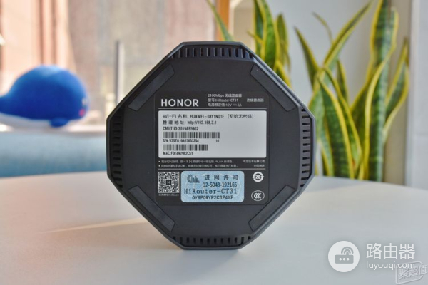 考虑到简洁美观问题,各接口均隐藏在路由器背面,除一个一孔电源接口外,还有4个1000M的网口,与市面上大多数路由器不同的是,荣耀猎人路由并没有区分WAN接口以及LAN接口,四个口可以自动识别WAN网和LAN网,就算是不懂网络的小白也能盲插进行网络配置。