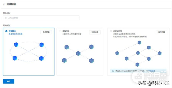 ▲智能组网其实就是构建了一个很大的虚拟局域网,组网成员通过蒲公英客户端,相同的账号就可以实现P2P点对点的共享,还能实现异地组网访问等功能。目前支持的网络类型有三种,对等网络:组网内的所有成员均可互相访问。集散网络:将组网成员区分为中心节点与普通成员,普通成员间无法互访,只能与中心节点互通。自定义网络:自定义成员之间的访问权限,目前仅支持纯软件组网。