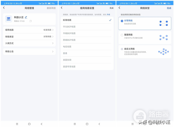 ▲除了电脑端可以管理智能组网之外,通过蒲公英路由器手机APP也可以方便的管理组件的智能网络,针对组网的线路、网络类型和入网方式等,可以快速的在手机端查看设置。