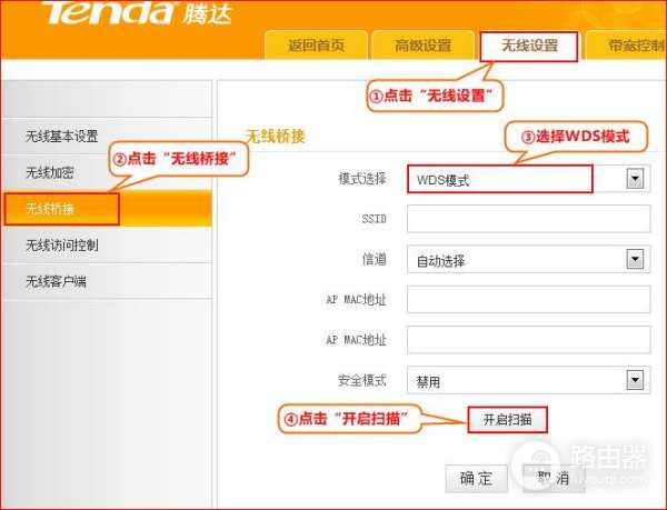 注意:如果WDS扫描不到主路由器的信号,请确认主路由开启无线功能,且尝试减小主、副路由器之间的距离。