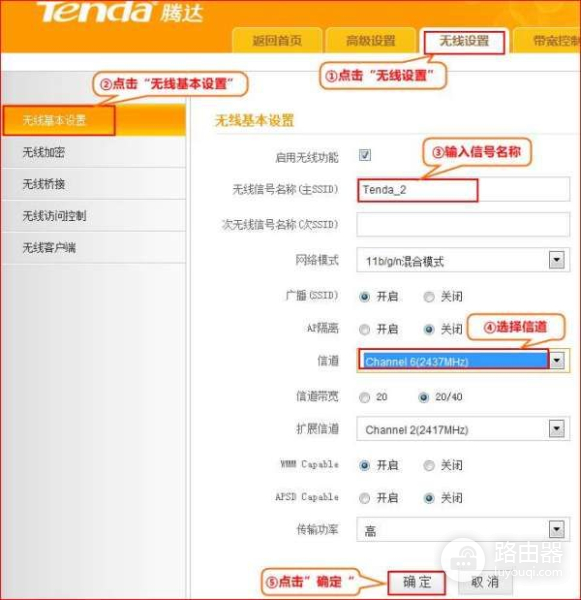 确认主路由器的无线信号名称、无线加密方式、无线密码以及无线信道。