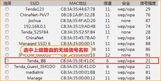 在扫描页面中找到主路由器的SSID,点击 连接。