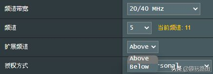 这个选项只在 2.4G 下可以进行调整。2.4G Wi-Fi 频宽(好比车道宽度)以每20Mhz进行划分。所以如果想跑到40Mhz频宽的速度,就需要占用到隔壁的信 道。而5G在划分频宽时,以80Mhz 频宽划分,所以这个选项就没有使用的必要了。