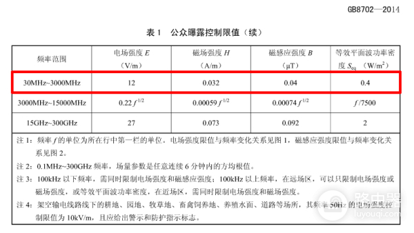 路由器的频段属于30MHz-3000MHz,根据国标要求,对人体辐射限制的等效平面波功率密度为0.4瓦/平方米。