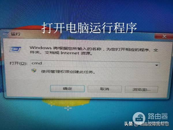 打开电脑,在键盘上输入“WINDOWS+R”,调出“运行”对话框,在对话框中输入“CMD”进入命令提示符界面,将下面的命令行复制到里面: