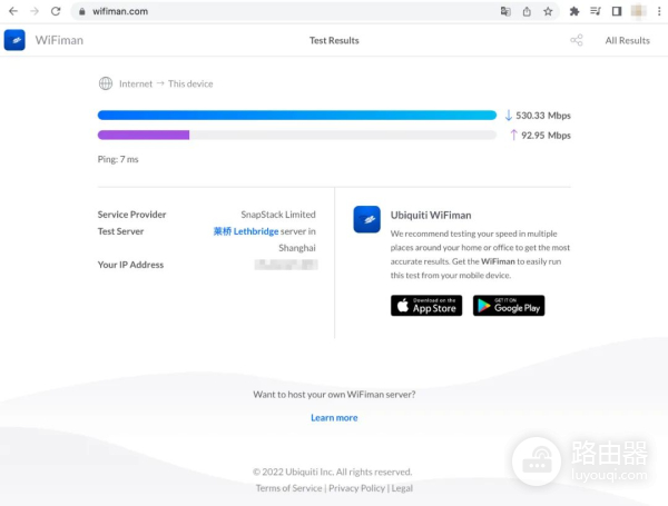 然后打开测速工具,推荐使用 WiFiman,一款免费的测速工具,网页测速地址为 https://wifiman.com/ 也可使用 speedtest 进行测速。