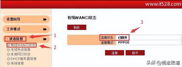 2、还可以登录到路由器的设置界面,查看下路由器的“WAN口状态”信息,看是否显示连接成功。