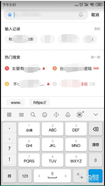 4、点击后出现如下图界面,下方出现键盘输入我们在路由器背面看到的地址