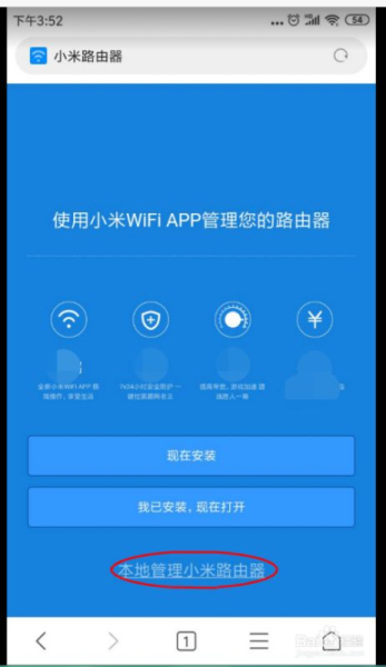 6、网址打开了,如下图。没装APP,就直接点击下方的“本地管理小米路由器”