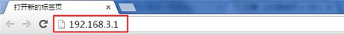 ①打开电脑中的浏览器,在地址栏中输入:192.168.3.1 并按下键盘中的回车。