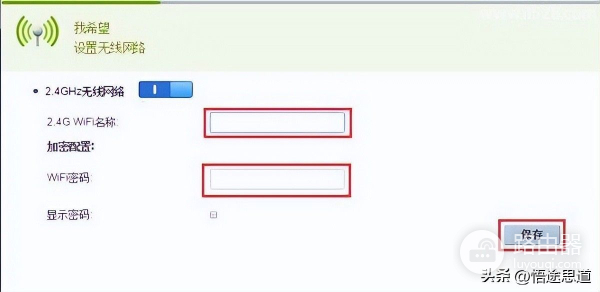 5、设置无线网络:自己设置“WiFi名称”、“WiFi密码”——>点击“保存”。