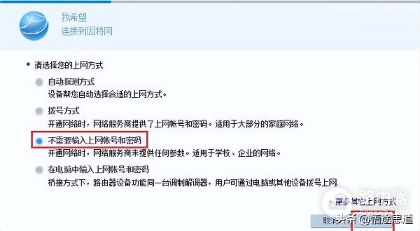 就是由路由器自动来选择一种上网方式,如果你不清楚自己的上网时,可以选择“自动弹出上网方式”