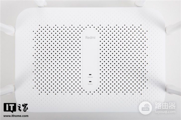 就目前的路由器消费市场而言,Redmi路由器AC2100在外观方面并没有什么特殊之处,中规中矩的设计,机身正面、背面都采用散热孔设计,“Redmi”标识烫在路由器机身正中央,标识下方则是“internet”指示灯与“system”指示灯,当这两个指示灯均处于淡蓝色常亮状态时,则路由器运行一切正常。
