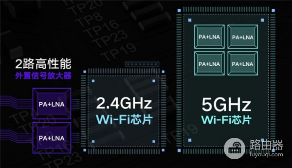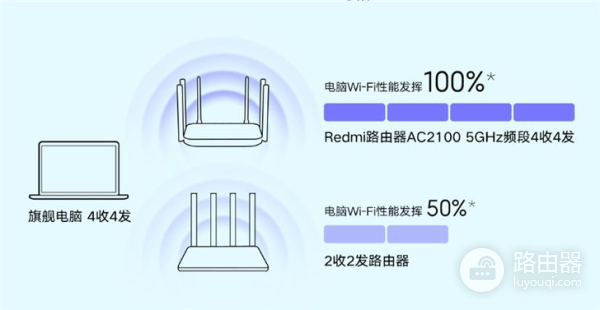 除了支持双频段之外,Redmi路由器AC2100的2.4Ghz和5Ghz分别搭配2路高性能外置信号放大器(PA功率放大器+LNA底噪声放大器)和4路内置信号放大器,能有效增强信号发射功率、提供信号接受灵敏度,使其传输更远、穿墙更好、覆盖更大。