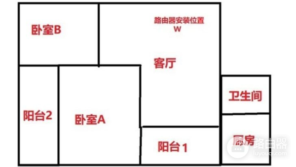 安装好路由器之后,想必大多数人与沧海一样,都是先来测一手网速。按照以往的惯例,沧海都要在自家室内挨个地点都测一次(房间构造大致如下图,画的不太精确,约90平)。