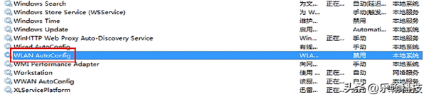 5.2 在弹出的服务管理界面,找到“WLAN AutoConfig”并双击鼠标左键,如下图所示: