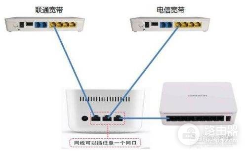 两台宽带,分别连接到路由器的两个任意端口;手机安装华为的智能家居APP。